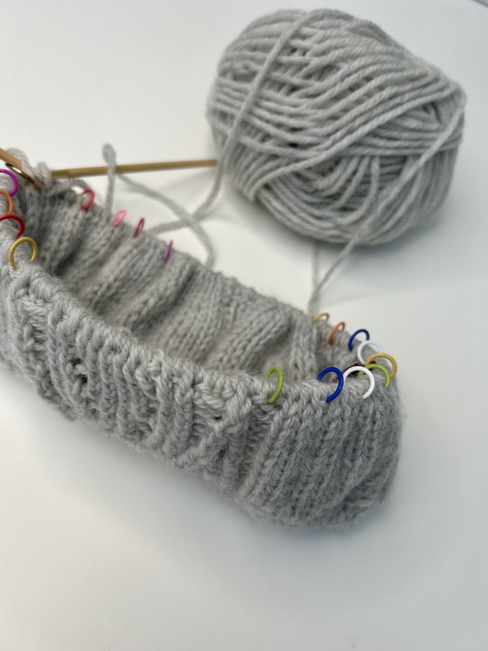 Strik 51 pinde frem og tilbage i dobbeltstrik (= 102 pinde i alt).